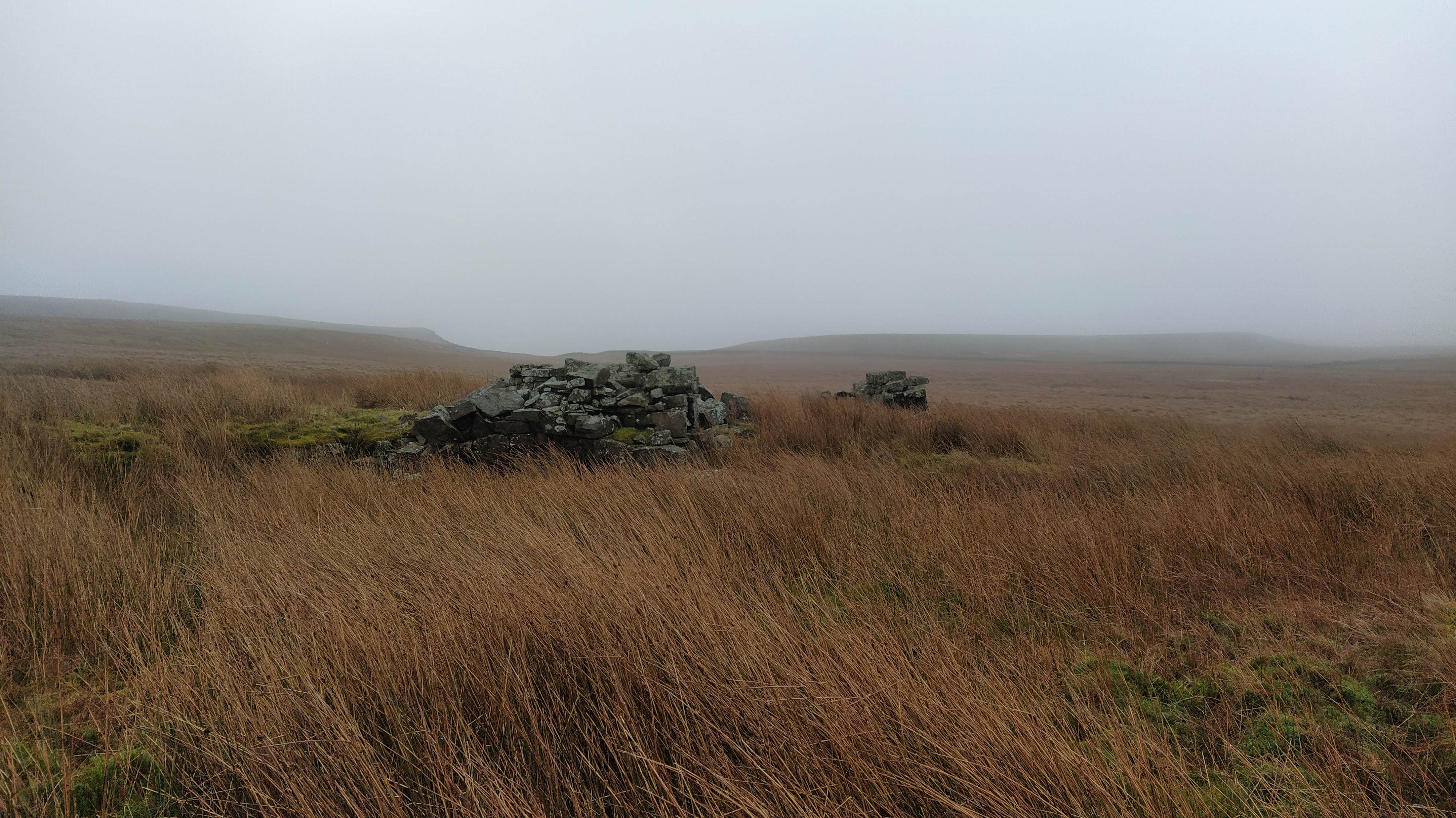 The path had rarely been used and it took a bit of wall following to find a gate. A sturdily built thing which was holding together nicely despite being mostly rust. I followed the wall through the next field as didn’t want to find myself in bogland, in the mist, running in circles.